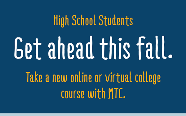Get ahead this fall with new online and virtual college courses at MTC. You Have Options