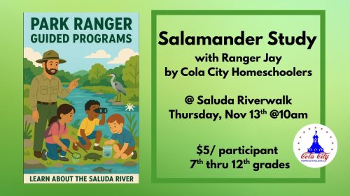 Note: This activity is hosted by Cola City Homeschoolers. Space is limited and pre-registration is required. SCROLL DOWN to reserve your space. It is NOT a drop off event.